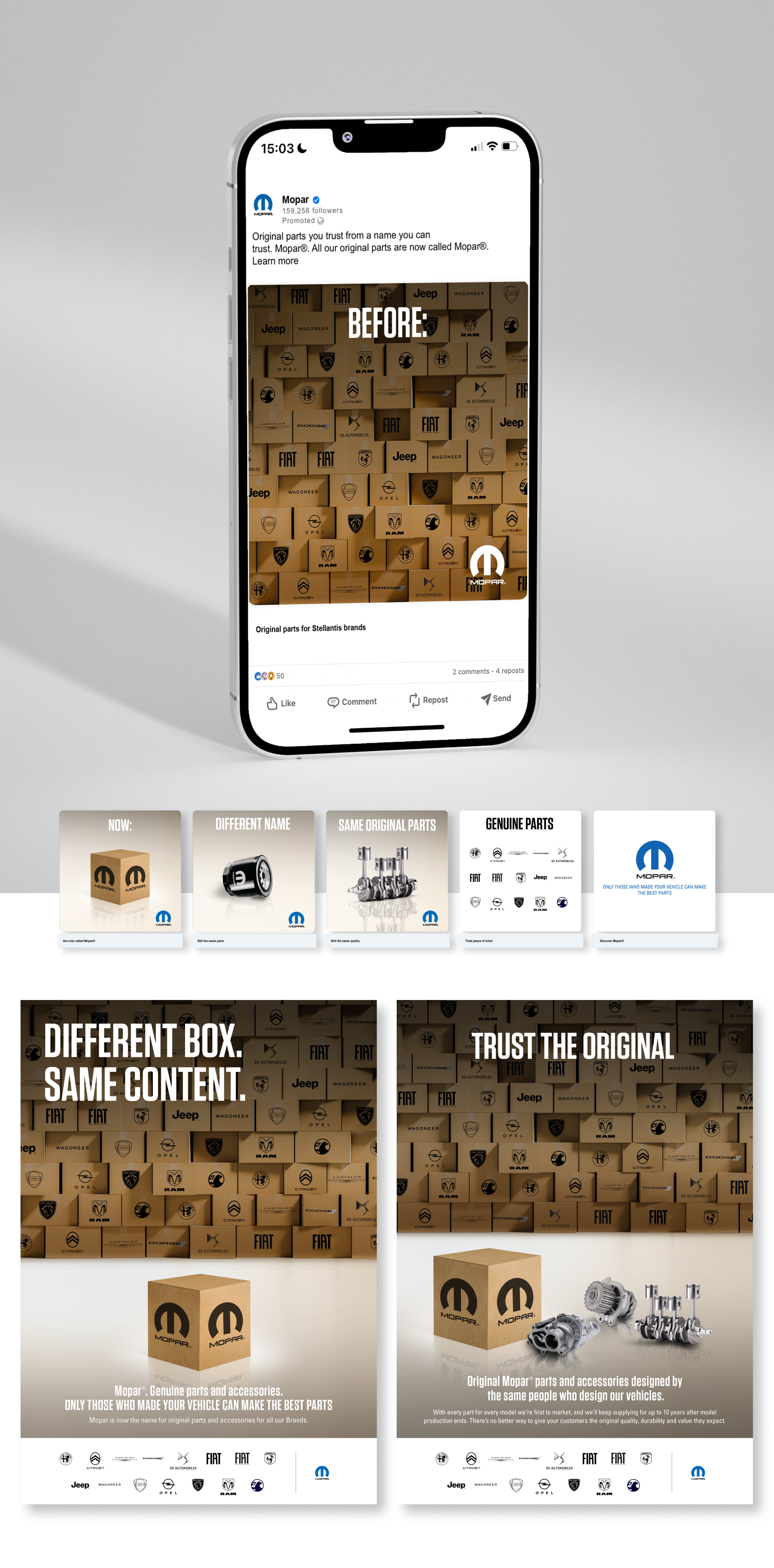 360° campaign for the Stellantis' part services brand; Mopar. Concept and image creation at Bespoke agency.